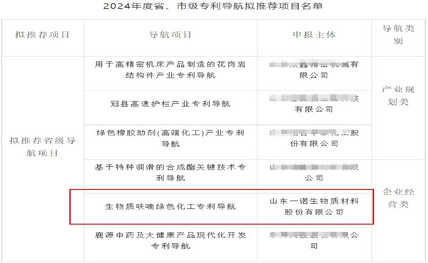 山东一诺生物入选2024年度省级专利导航项目拟推荐名单