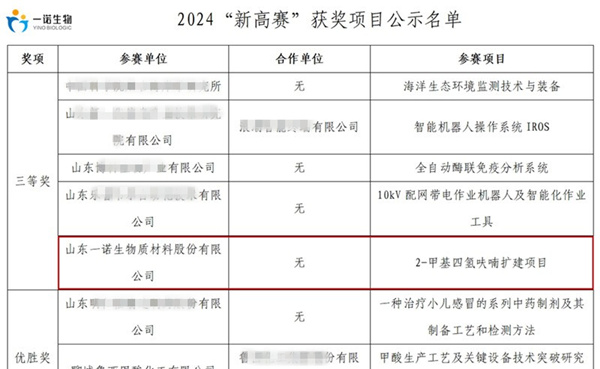 山东省工业和信息化厅公示2024年“山东制造·齐鲁精品”名单,嫩叶草满18点此进的“糠醇”产品入选。